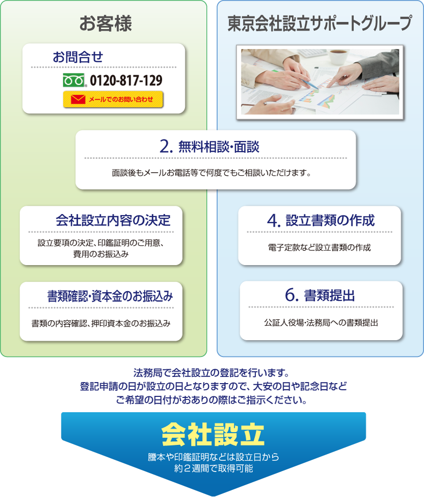 以前勤務していた介護施設の方針が合わず、数名で会社を作ろうと飛び出したはいいのですが、会社の設立の方法など全くわからず、前勤務先の取引銀行に相談に行ったところ、東京会社設立サポートグループを紹介いただきました。